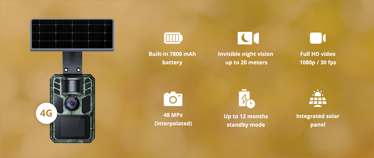 A Wachman Alfa Live 4G egy nagy teljesítményű, intelligens vadkamera professzionális funkciókkal mindenkinek, aki megbízható megfigyelést keres. Akár 48 MP fotók és sima Full HD videók rögzítésére képes, lenyűgöző részletességgel.