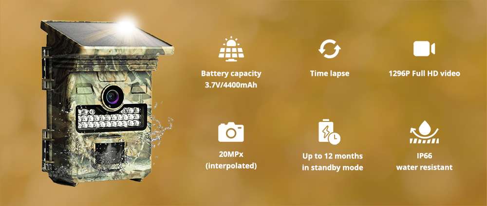 A Wachman Solar Lite kiváló kép- és videóminőséget nyújt: 20MP fényképeket és 1296P videót rögzít. Az akár 20 méteres éjjellátó hatótávnak köszönhetően a legkisebb mozgás sem marad észrevétlen – még teljes sötétségben sem.